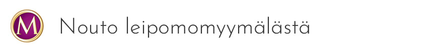 MBakeryn leipomo sijaitsee Turun Mälikkälässä, ja verkkokauppamme toimii Turun alueella. Verkkokaupasta ostettuja tuotteita voitte noutaa tällä hetkellä leipomomyymälältämme (Salvumiehenkatu 4). Tuotteita voi puhelimitse ja sähköpostitse tilata noudettavaksi myös Piece of Cake -kahvilasta (Turun kauppahalli) ja Take the Cake -kahvilasta (kauppakeskus Mylly). Tuotteet tulee noutaa toimipisteidemme aukioloaikojen puitteissa. Huomaathan, että verkkokaupan hinnat ovat voimassa leipomomyymälältä noudettaessa.