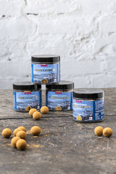 Suklaa-lakritsipalloja suoraan Suomen Turusta, valkosuklaa-lakritsi MBallo. Valmistettu gluteenittomista raaka-aineista.